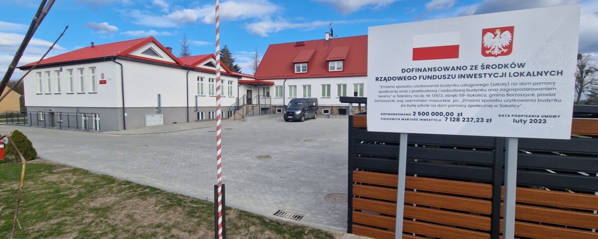 Z początkiem lutego Gmina Wiejska Bartoszyce uruchomiła Dom Pomocy Społecznej w Sokolicy. Placówka powstała w zmodernizowanym po byłej szkole podstawowej obiekcie, w pełni dostosowanym pod potrzeby mieszkańców (gruntowny remont przeszedł budynek, jak i teren rekreacyjny wokół). DPS dysponuje 27. miejscami, w pokojach dwu i trzyosobowych, stołówką, świetlicą, punktem medycznym, pokojem gościnnym, a do tego w pełni przygotowanym personelem, sprzętem rehabilitacyjnym i do codziennego użytku, własną kuchnią i całym zapleczem gospodarczym, oraz samochodem transportowym. To pierwszy taki obiekt na terenie Gminy Bartoszyce i będący w jej administracji, który jest dostępny dla wszystkich potrzebujących całodobowej opieki. Więcej informacji podamy w „Wiadomościach Lokalnych” (18.02) oraz w programie „Szybki Montaż’ w Telewizji Kablowej Bart-Sat.