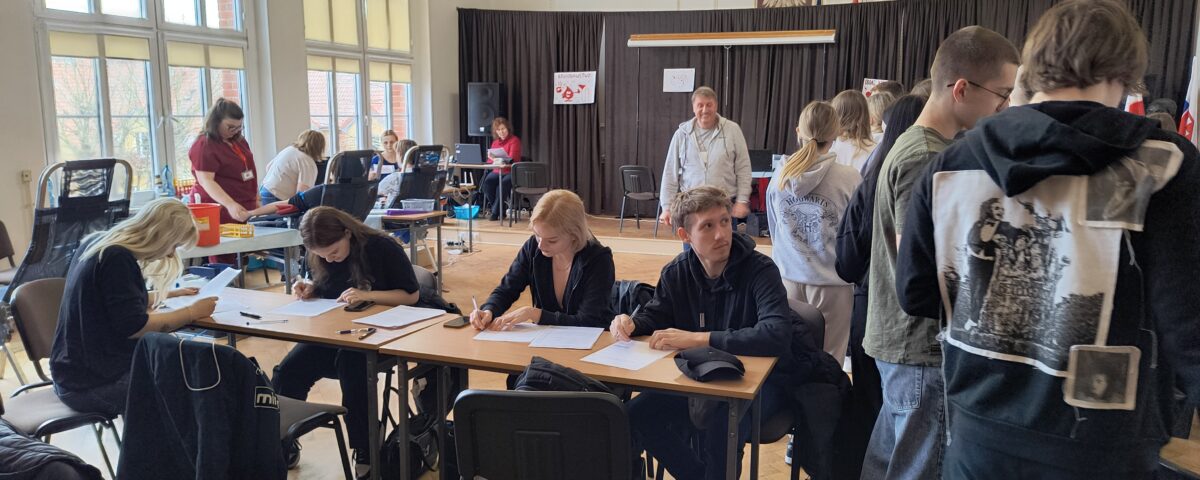 Pełnoletni uczniowie (bo taki jest warunek) z Liceum Ogólnokształcącego im. S. Żeromskiego w Bartoszycach mogą wziąć dziś ( 18.03) udział w akcji krwiodawstwa. Organizatorzy akcję zorganizowali na terenie szkoły, co ma wpływ na decyzję uczestników, którym bliżej jest, by spróbować, a w wielu przypadkach związać się na dłużej z krwiodawstwem. Oczekiwanie na swoją kolej młodzież wykorzystuje na rozmowy, oraz refleksję, jak wiele zależy od ich decyzji.