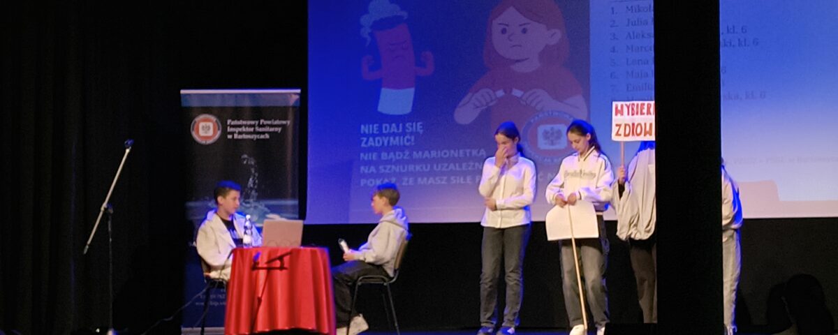 Z inicjatywy Powiatowej Stacji Sanitarno-Epidemiologicznej odbyło się profilaktyczne spotkanie w temacie zagrożenia, jakim jest palenie papierosów i e-papierosów. Niestety to zagrożenie, które zbyt często dotyka młode pokolenie, stąd w prelekcję organizatorzy włączyli uczniów szkół podstawowych, zarówno jako odbiorców, ale również tych, którzy poprzez scenki dzielili się wiedzą.