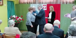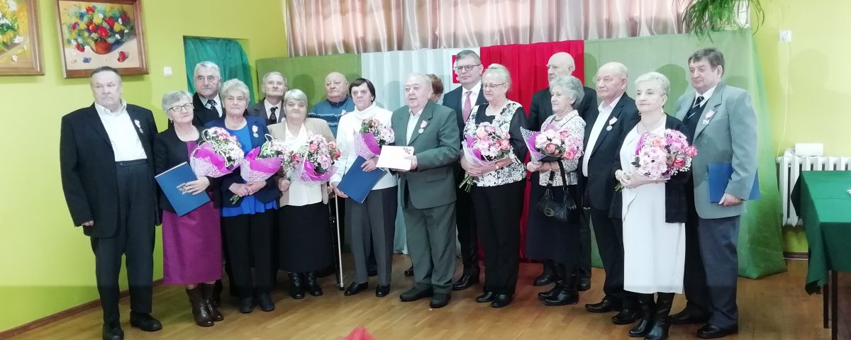 8. par z rąk wójta Gminy Bartoszyce Andrzeja Dychy odebrało medale za wieloletnie pożycie małżeńskie. Chwila wzruszająca, a przy tym budująca wyróżnionych małżonków, którzy mają za sobą bagaż doświadczeń tych trudnych i tych radosnych. To bardzo miły powrót do chwil sprzed pięćdziesięciu laty, ale tym razem otoczony spokojem i poczuciem bezpieczeństwa, czego dowodem jest przezywany wspólnie jubileusz Złotych Godów.